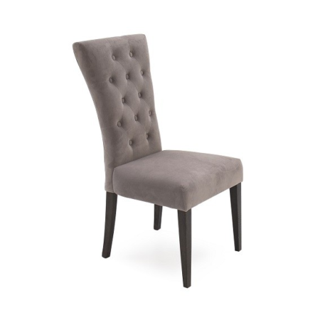 Baroque dining chairs available in cream or grey linen The Baroque Deep Buttoned Dining Chairs are pure elegance with beautiful pinched pleat detailing and deep buttoning accented with solid ash legs.