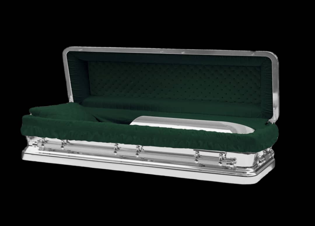 At first glance, the Helios Casket’s striking color combination of silver and dark greenh sets it apart from traditional casket
