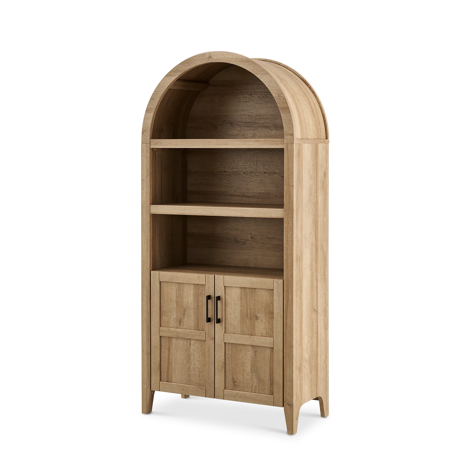 The Lauren Arched 77.4″ Tall Cabinet in Light Oak stands out as a striking piece of h furniture that blends both aesthetic appeal