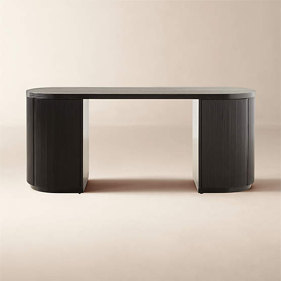 The Reid 70″ Oval Black Wood Storage Desk is a striking executive desk that blends sculptural design with practical storage. Designed